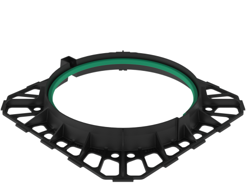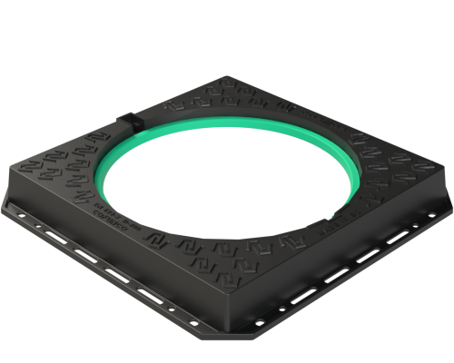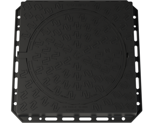Set of 600mm clear opening. Available with 850mm and 790mm exterior diameter. Hinged cover with maximum opening range of 120º, safety blocking at 90º angle and removable from the frame at 90º. Closing system operated by two elastic bars. Anti-residue elastomeric gasket design for noise reduction. Anti-slip surface. Opened by standard tools (crowbar, pick). Available in ventilated cover model 1164VENT and grating model 6184 intense traffic (11,8 dm2 absorption surface) and model 6174. All frames may be substituted for concrete cover model 1186. Opening force below 17,5 daN. Total or partial customization available.