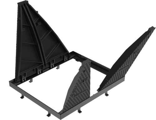 Triangular access covers with maximum opening range of 110˚ ,safety blocking at 90˚angle andremovable from the frame at 90˚. Anti-slip surface. Special noise reduction design, optimising thefitting between the frame and the cover.